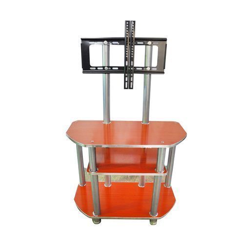 A simple TV stand that carries up to 32" TV in the size of 4 feet length. It provides you with a drawer to make storage of TV media accessories easy and has a unique design which accommodates, hoofers, decoders, play stations and a TV at the same time. It has stands that come in metallic silver and plastic black to give it a raise from the ground.